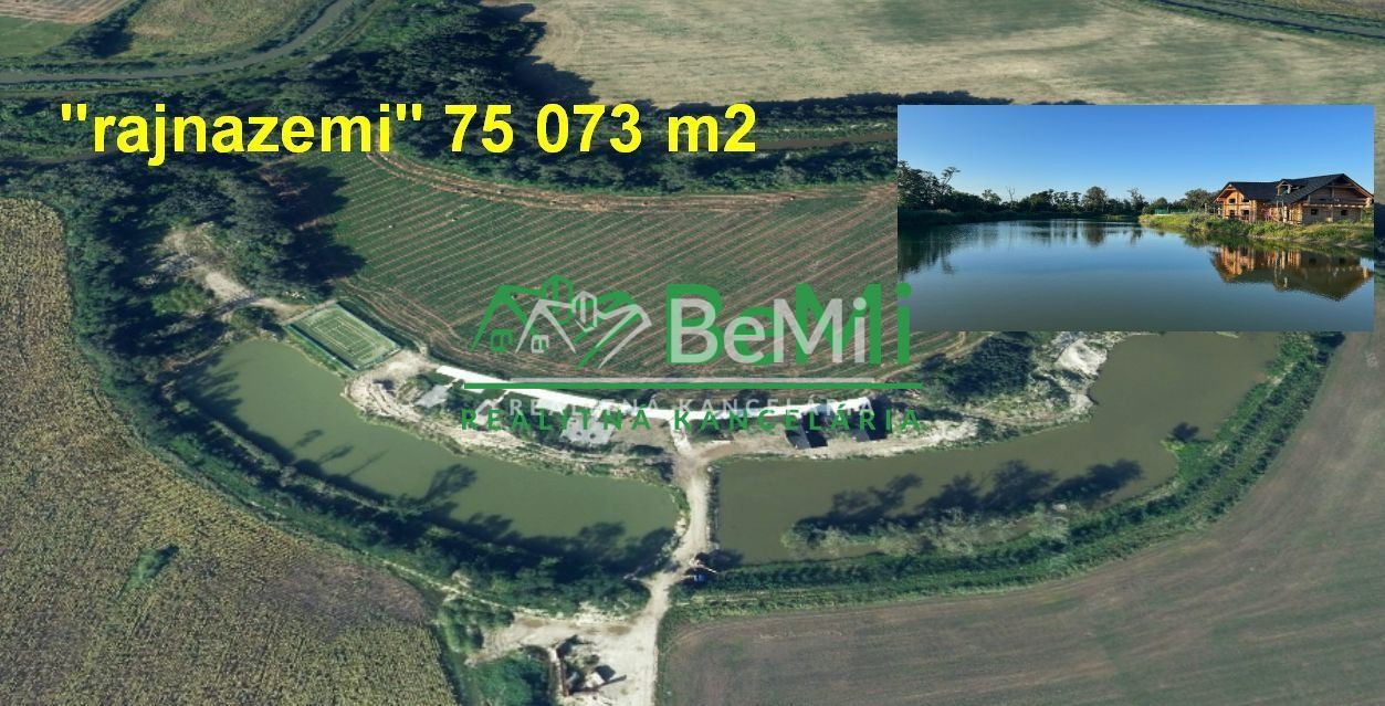 Ponúkame vám na predaj RAJNAZEMl o výmere: 75 073m2 z toho vodná plocha – 46 366m2. Súčasťou areálu sú tri zruby v štádiu hrubá stavba o rozlohe 188m2, 87m2 a 85m2 a dve základové dosky o veľkosti 85m2 a 86m2. Na pozemku sa nachádzajú prípojky na IS.