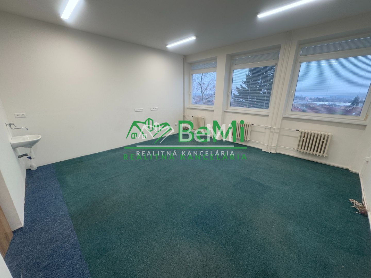 Vo všetkých kanceláriách sa nachádza umývadlo, koberec alebo plávajúca podlaha.
