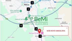Moderný kancelársky priestor, s rozmermi 6x3,4 m, sa nachádza v centrálnej časti mestskej časti Krškany, vzdialený 5 min od centra mesta aj výjazdu na rýchlostnú cestu R1.