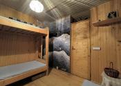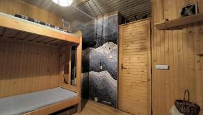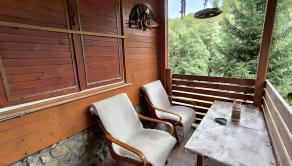 postavená na pevných murovaných základoch, drevená, so šarmom pravej lesnej chalúpky