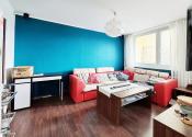 -obývačka s rohovou sedačkou, TV a audiom, priamy vstup na veľký balkón,