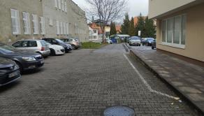 Do budovy sa vchádza z hlavnej ulice, alebo z parkoviska za budovou, kde sú aj vyhradené parkovacie miesta pre nájomcov.