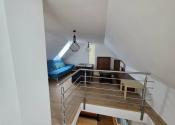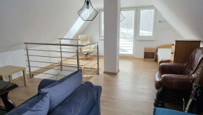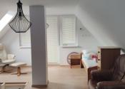 Poschodie ponúka priestrannú spálňu s balkónom, z ktorého sa naskytá nerušený výhľad na okolitú krajinu – ideálne miesto na rannú kávu či večerný pohár vína.