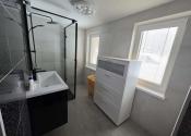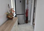 Prízemie tvorí otvorený denný priestor s obývacou časťou, plne vybavenou kuchyňou s indukčnou varnou doskou, umývačkou riadu a kvalitnou kuchynskou linkou. Samozrejmosťou je kúpeľňa so sprchovým kútom, WC a práčkou. Ohrev vody zabezpečuje elektrický bojler 80 l.
