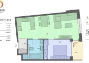 Vstupná chodba, kúpeľňa s WC a vaňou, kuchyňa s obývacou miestnosťou, spálňa, balkón (výstup zo spálne aj obývačky)...