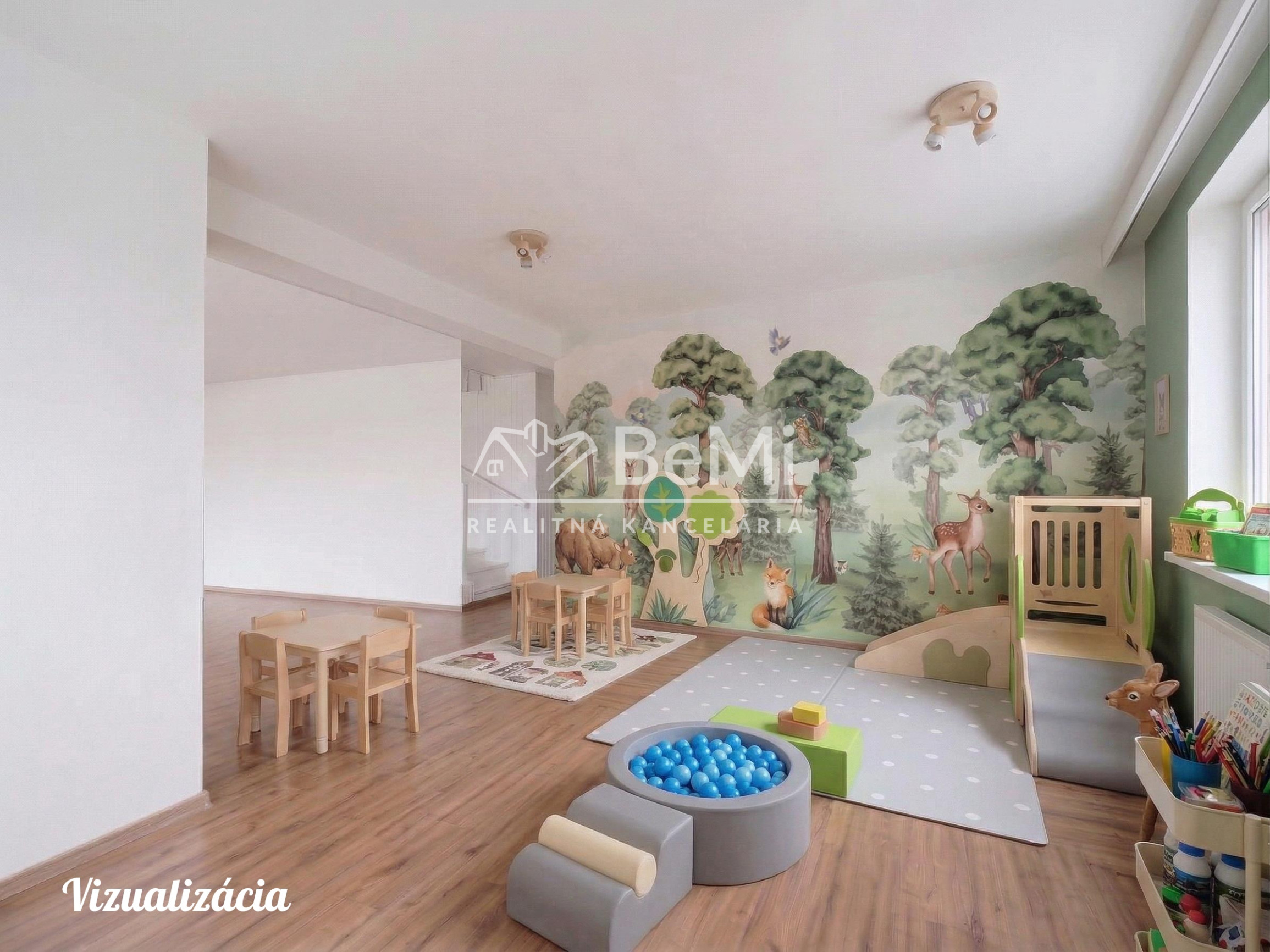 8 veľkých miestností vhodných na bývanie a kancelárie, škôlku, ateliér alebo služby pre klientov