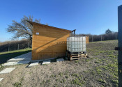 Na pozemku sa nachádza: nová drevená chatka s rozmermi približne 6 × 5 m, suchá toaleta, nádrž na vodu, nové oplotenie po celom obvode pozemku.