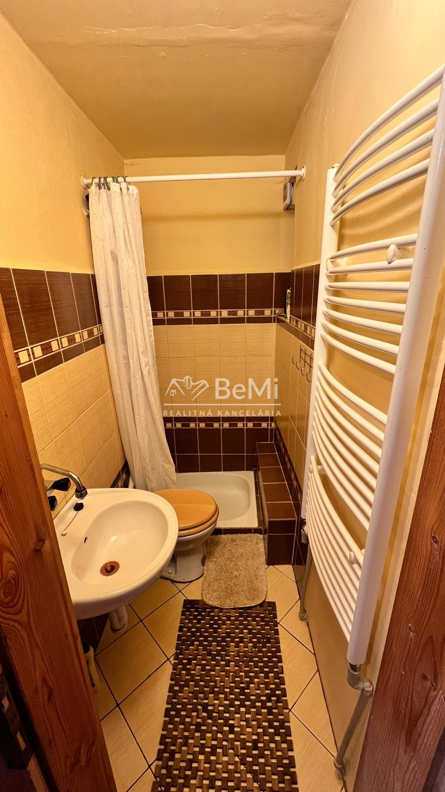 Sociálna časť: sprchový kút, umývadlom, WC, nástenný radiátor.