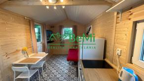 Nová, plne vybavená a zariadená rekreačná chatka, schopná poskytnúť bývanie aj v chladnejších mesiacoch. Domček má vodné WC, industriálny sprchový kút, novú linku Ikea, drez, el. rúra, kombi chladnička, vstavaná el. platňa, sedenie, rozkladacia sedačka, predpríprava na práčku, dokonca nerezovú kanvicu. Samozrejmosťou sú na mieru šité závesy na okná, poteší terestriálna anténa s LED TV + bluray a iné.