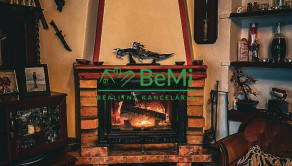 -Prízemie: vstupná chodba, obývacia izba s krbom spojená s kuchyňou, z kuchyne sa vstupuje do hlavnej spálne, do špajze a kúpeľne.
