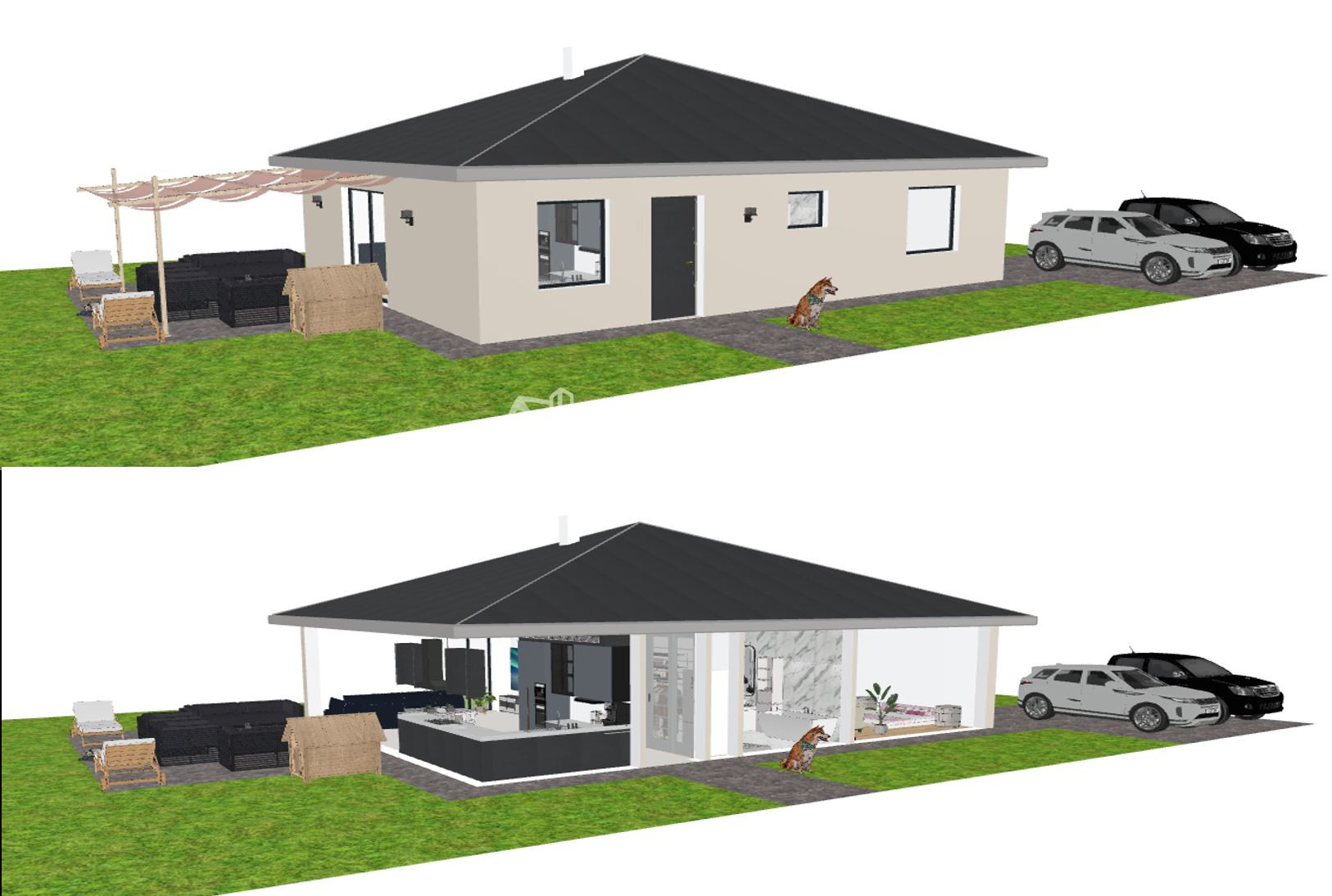 Bungalov je možné postaviť v dvoch variantoch (viď obrázky).