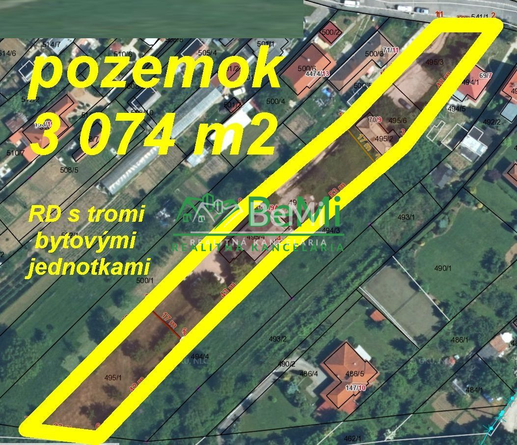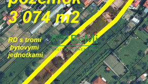 3- podlažný dom s tromi bytovými jednotkami na pozemku s rozlohou až 3 074 m2...