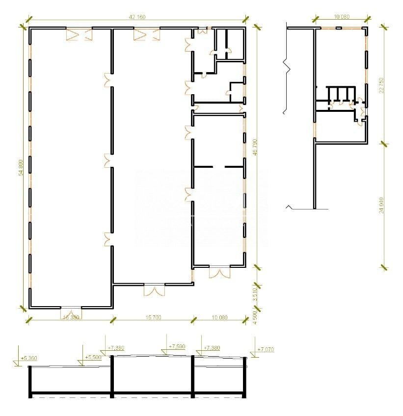 Administratívna časť je súčasťou výrobnej haly nachádzajúca v bočnej – prednej časti, na vrchnom podlaží.