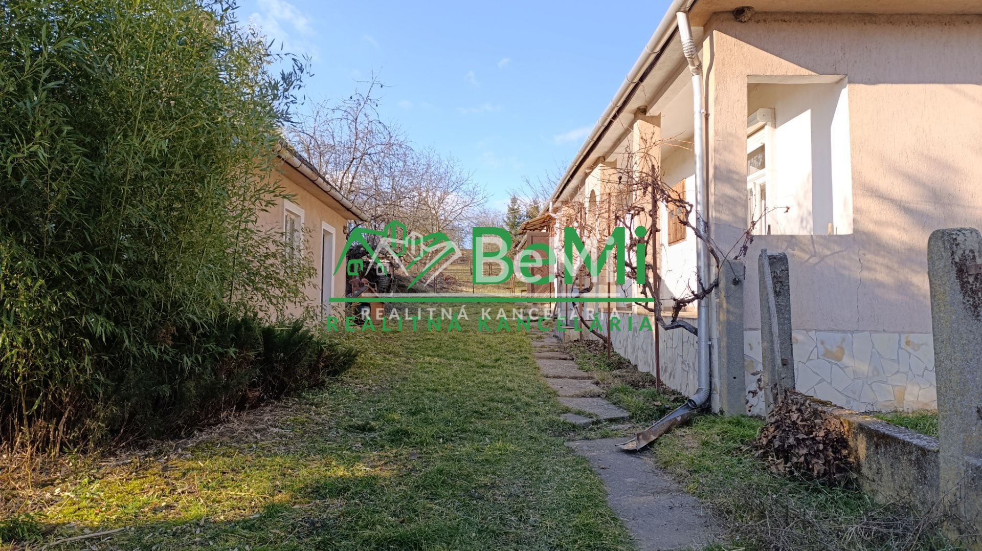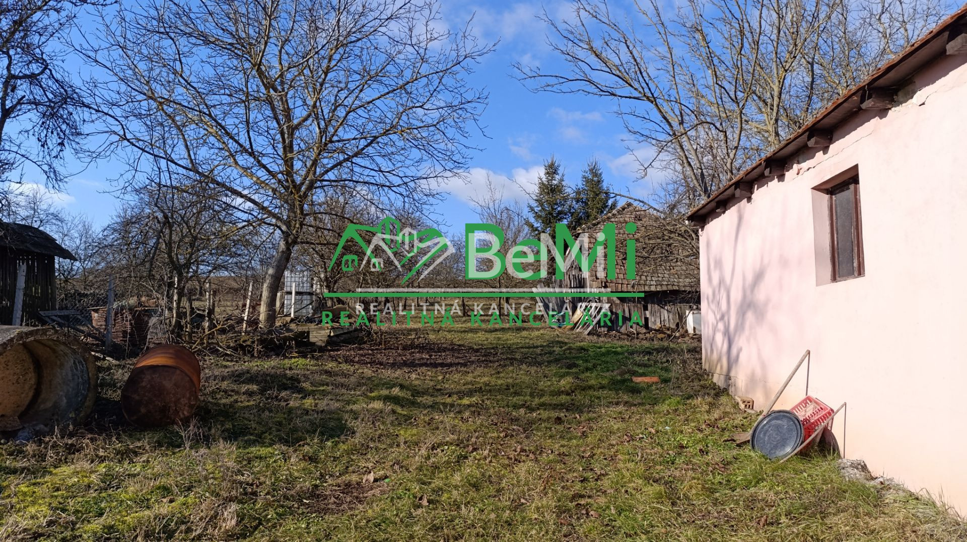 K domu prislúcha záhrada s rozlohou 2066 m2. Za domom bola pristavená v roku 2020 hospodárska budova, vhodná aj na garáž. Na pozemku sa nachádza aj letná kuchynka, kde sa nachádzajú 2 miestnosti.