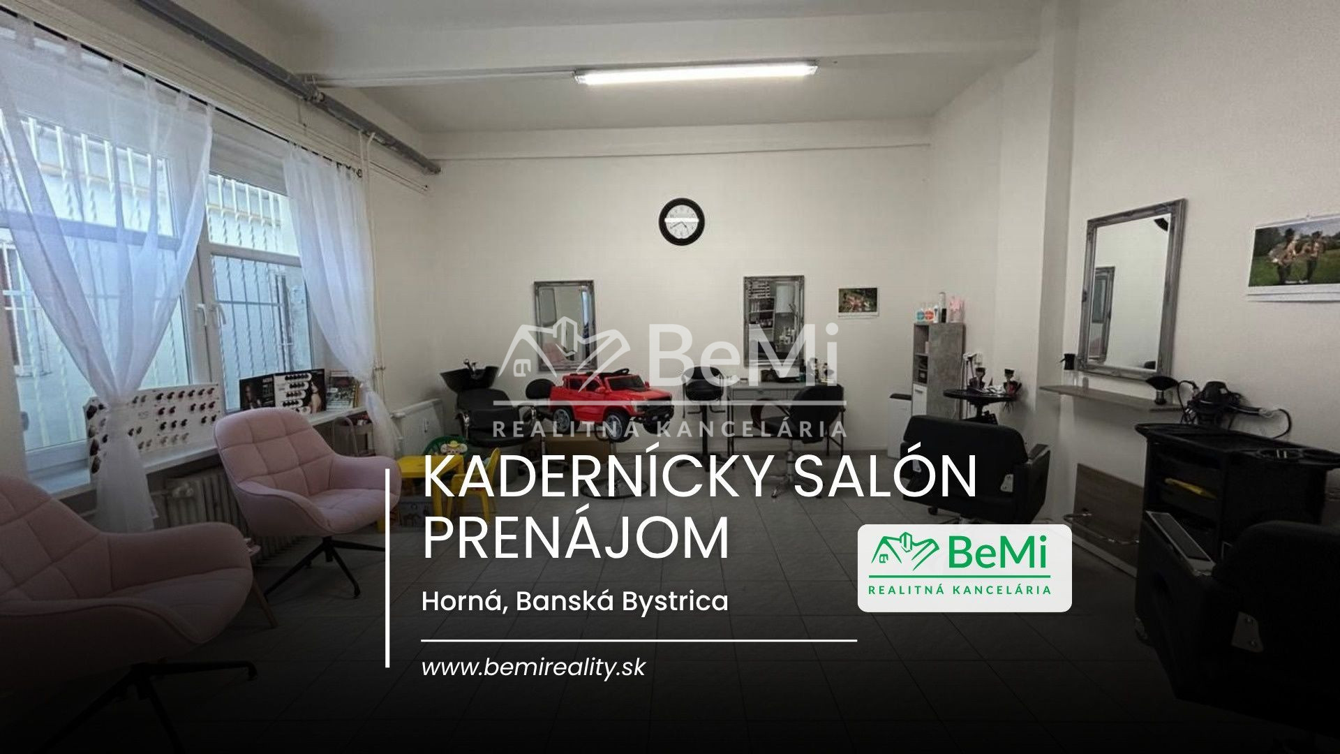 Realitná kancelária BeMi Vám ponúka na prenájom miesto v plne vybavenom a funkčnom kaderníctve,