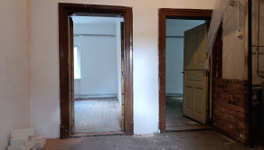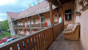 Nachádza na prvom poschodí. Pozostáva z menšej predsiene, kuchyne z jednej priestrannej izby, dvoch menších izieb a jednej malej izby ,veľkej špajze ,kúpelne s toaletou.Má rozlohu 90 m2. K bytu prislúcha aj dreváreň na úschovu dreva. Podlahy v byte sú pôvodné drevené .Okná sú v dvoch izbách vymenené plastové.