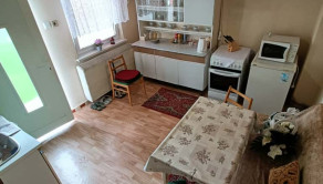 Predám starší rodinný dom v obci Hrušovany, ktorý je vhodný na okamžité bývanie. Dom sa nachádza na rovinatom 7árovom pozemku. V prednej časti domu sa nachádzajú ovocné stromy, vinič a kvety. Dom je postavený v zadnej časti pozemku z pálenej tehly.. Za domom sa nachádza letná kuchyňa ktorá je spojená s domom a je z nej vstup do kúpeľne v zadnej časti domu. Na dome sú vymenené všetky okná a vstupné dvere za plastové. Na chodbe kúpeľni a letnéj kuchyni je betónová podlaha. V izbách je drevená podlaha. Dom je napojený na obecnú kanalizáciu, plyn a elektrinu. Dom je v pôvodnom, ale veľmi udržiavanom stave, vhodný na rekonštrukciu. Kúrenie v dome je zabezpečené novým plynovým kotlom a ústredným etážovým kúrením. Niektoré radiátory sú vymenené. Ohrev vody je zabezpečený elektrickým bojlerom. Voda je zo studne.
