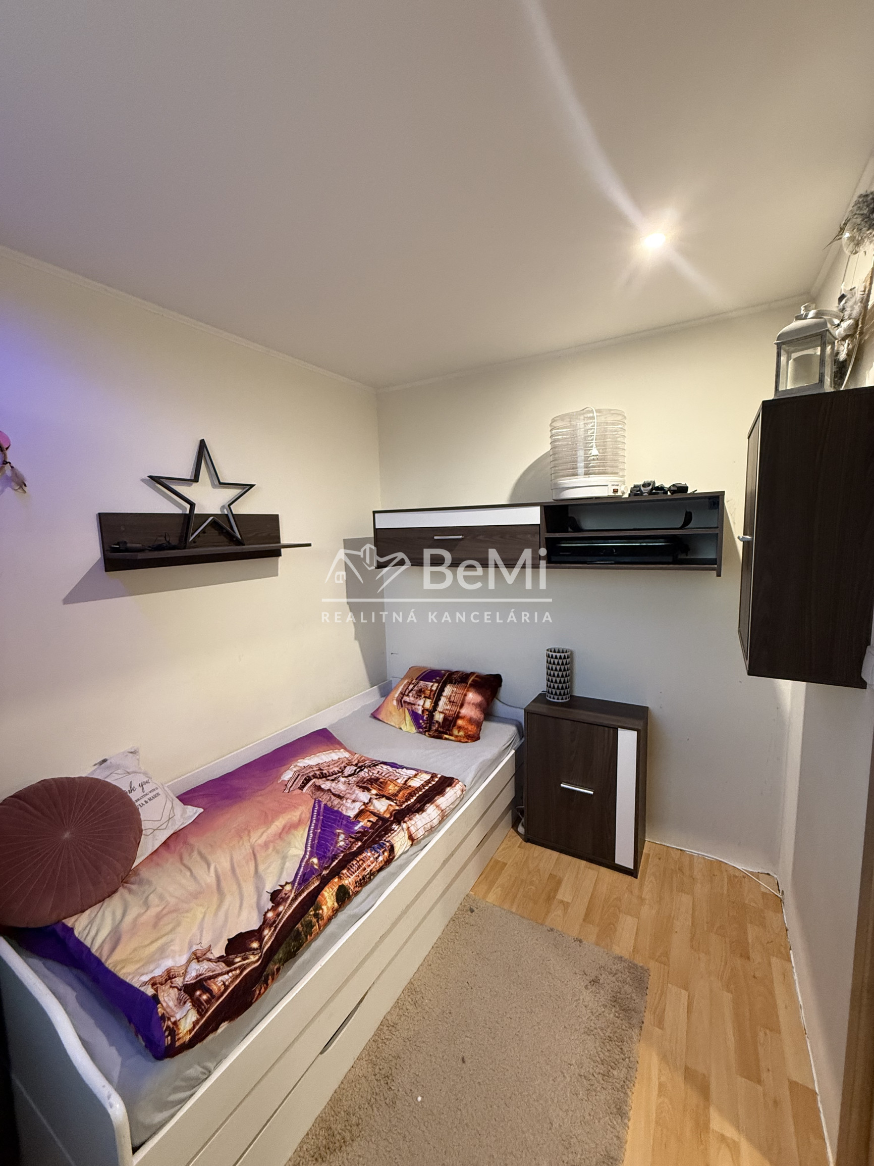 Mgr. Marián Feďo z realitnej kancelárie BeMi Vám ponúka na predaj 2.5 izbový byt v meste Bardejov na Slovenskej ulici. Je to veľmi blízko historického centra. Výmera bytu je 64 m2. Byt prešiel rozsiahlejšiou rekonštrukciou, ktorá začala v roku 2010 a skončila v roku 2015. Vymenené boli plastové okná, ktoré tvorí izolačné dvojsklo. Byt sa nachádza na 1. Poschodí. V bytovom dome sa nachádza výťah, boli vymenené stupačky a je zateplený. Byt disponuje taktiež veľkou logiou, ktorá bola namontovaná v roku 2020. Logia je otvorená s výhľadom na detské ihriská. V byte bola kompletne vymenená elektroinštalácia, rozvody vody a odpadov. Znížené sadrokartónové stropy, ktoré sú všade okrem jednej izby. Rekonštrukciou prešla aj kúpeľňa s wc. Kúpeľnú tvorí keramická dlažba a obkladačky, sprchový kút s vaňou, el. zástrčka na práčku a sušičku. V zvyšných častiach bytu sú laminátové podlahy z roku 2010. Štukové stierky, bezpečnostné vchodové dvere, interierové dvere a obložky sú z drevotriesky. Kuchynská linka montovaná v roku 2010. V kuchyni je pre kuchynskú linku predpríprava na led svietidlá.