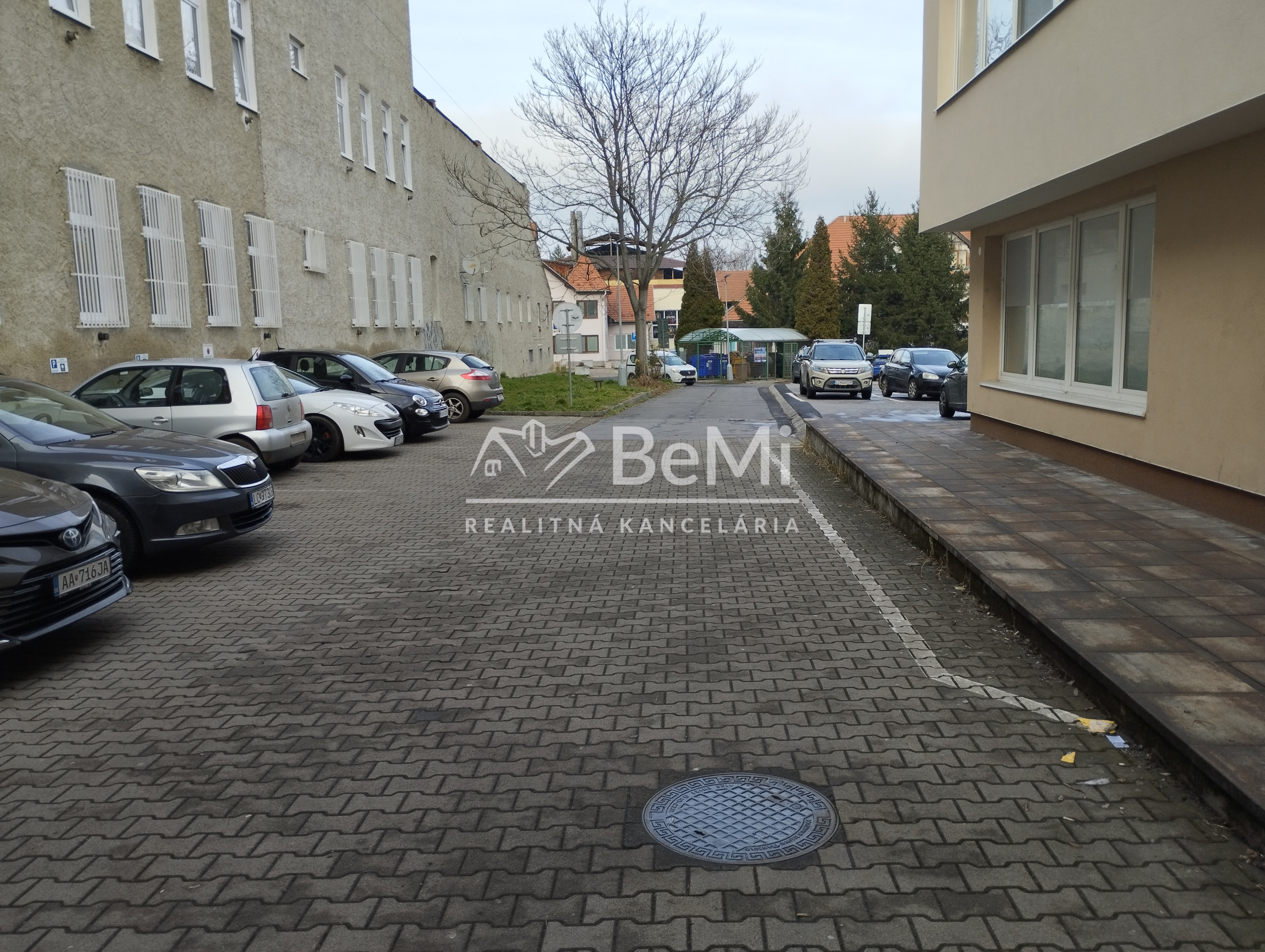 Do budovy sa vchádza z hlavnej ulice, alebo z parkoviska za budovou, kde sú aj vyhradené parkovacie miesta pre nájomcov.