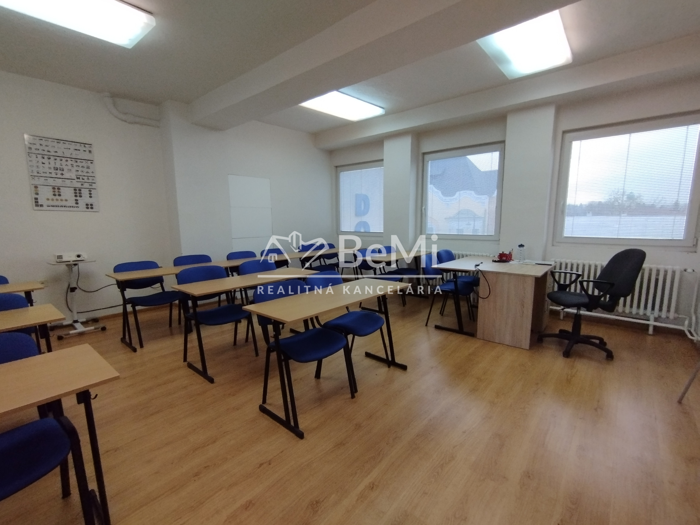 Ponúkame Vám na prenájom kancelársky / prevádzkový priestory na ulici T.G.Masaryka .v Lučenci. Bude dostupný od februára 2026. Priestor má rozlohu 33,42 m2, nachádza sa na 2. poschodí budovy. Má plastové okná smerujúce na ulicu T.G.Masaryka. laminátové podlahy a umývadlo. Kapacitne postačuje pre pribl. 20 odôb , ak ide napr. o výučbu, kurzy. Oddelené sociálne miestnosti sa nachádzajú na chodbe, s 3-3 toaletami pre dámy a pánov. V miestnosti je zavedené ústredné kúrenie na plyn a VODA- osadené umývadlo. Priestor bude využiteľný na rôzne komerčné a prevádzkové účely. V prípade potreby ďalšej miestnosti na doplnenie, je MOŽNÝ PRENÁJOM VEDľAJŠEJ MIESTNOSTI o rozlohe 12,90 m2 za 130, -Eur s energiami a s DPH, ktoré možu byť aj prepojené. V budove je dostupný káblový rozvod optickeho internetu. Prenajímateľ je ochotný za symbolickú cenu zariadiť kanceláriu nábytkom podľa jeho možností. Priestor je využiteľný aj vo večerných hodinách a cez víkendy.