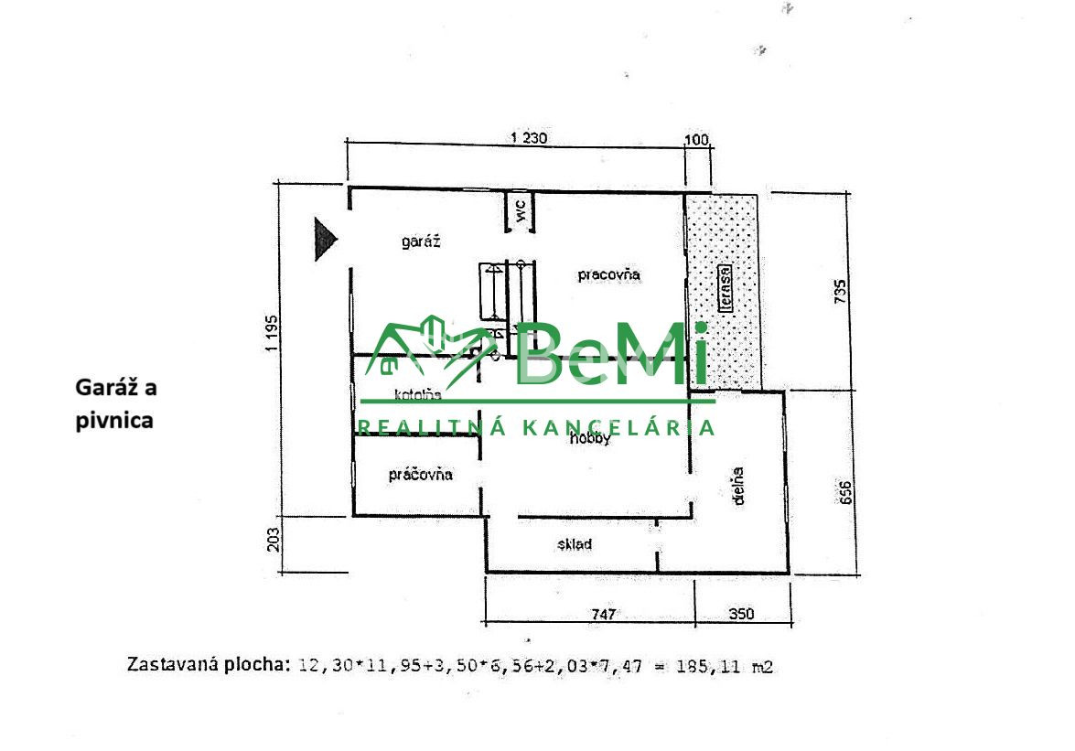 - pivnica (o tri schodíky nižšie): 5 miestností - veľká pivnica, kotolňa, práčovňa, sklad a dielňa.