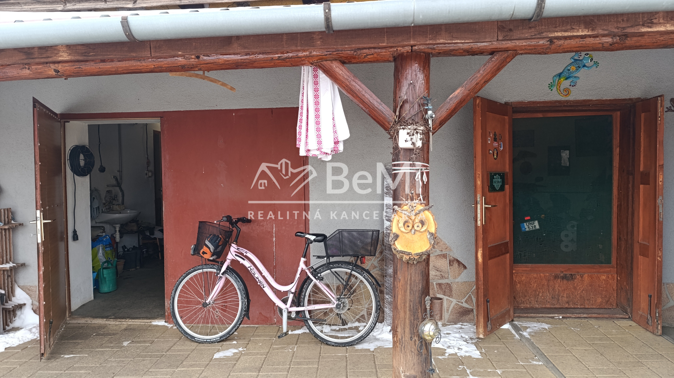 Dom pozostáva z chodby, veľkej haly s jedálňou a kuchyňou, a dvoma spálňami. Vedľa je garáž s vodou, elektrinou, a skladová miestnosť. Na pozemku sa nachádza gril, podzemná pivnica i studňa . Kúrenie v dome je riešené plynovým kúrením.Dom je zateplený.