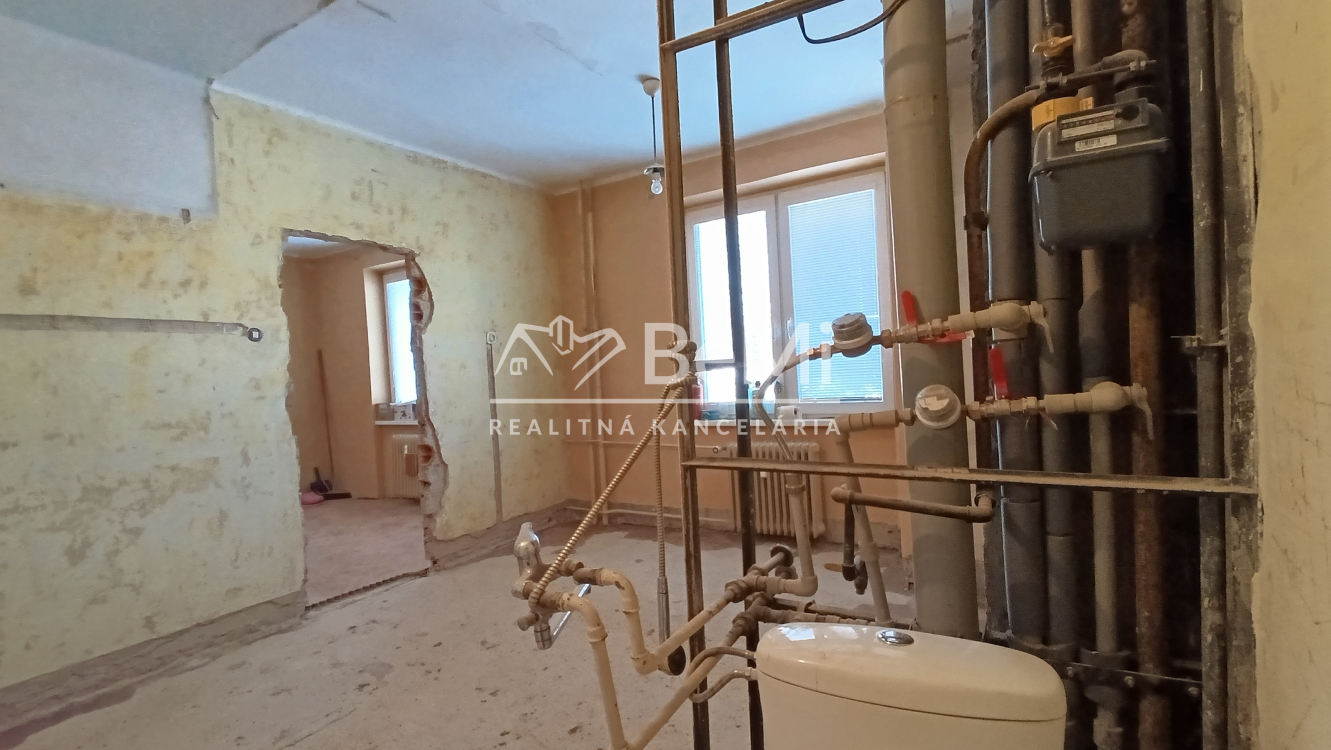 V byte je zbúrané jadro a pripravené na prerábku. Náklady na bývanie sú pomerne nízke , bytovému družstvu okolo 200,-Eur.