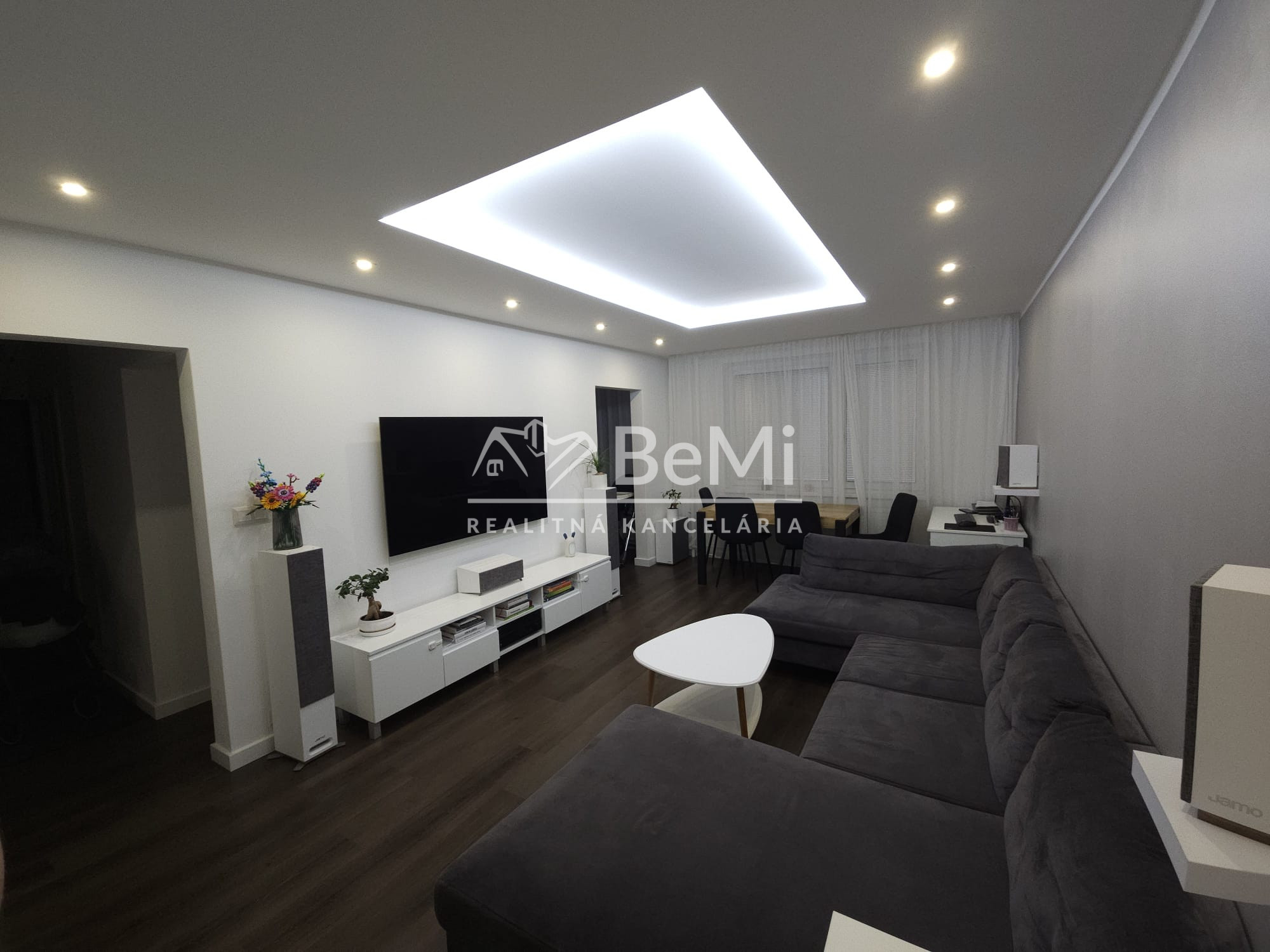 Slnečný, nadštandartne rekonštruovaný byt, kvalitné spotrebiče, dekoratívne riešené stropy s osvetlením, optika, internet, parkovanie zaregistrované na rezidenčnú kartu, odhlučnený, zateplený byt, zabudovaná vzduchotechnika s odsávaním z kuchyne,kúpeľne, WC, audio a dátové rozvody v byte.