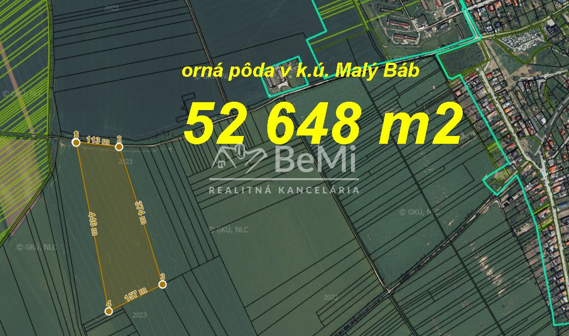 Na predaj orná pôda v k.ú. Malý Báb o výmere až 52 648 m2. Ucelený pozemok – rozmery viď foto v galérii...Jeden majiteľ...
