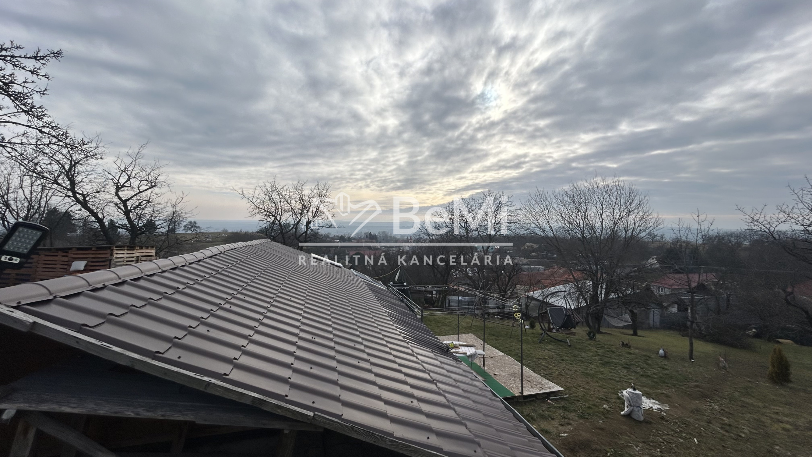 • chatka má plechovú strechu