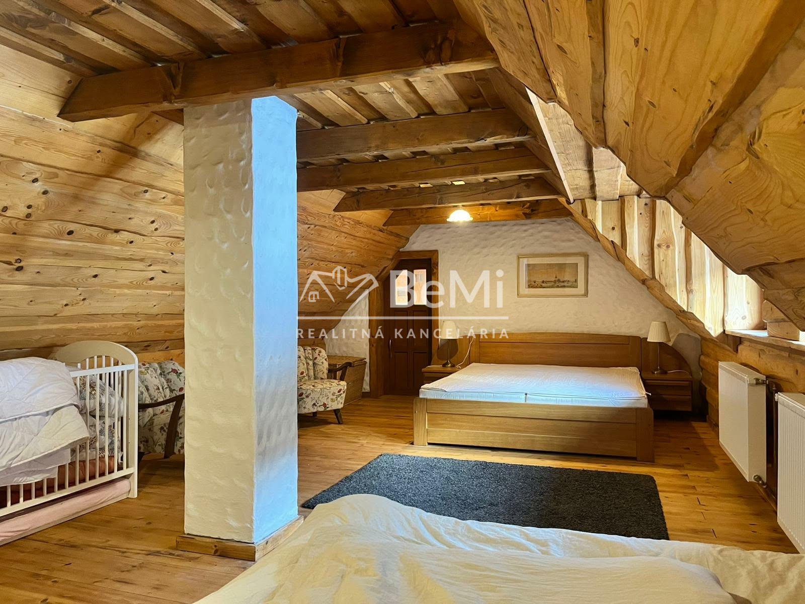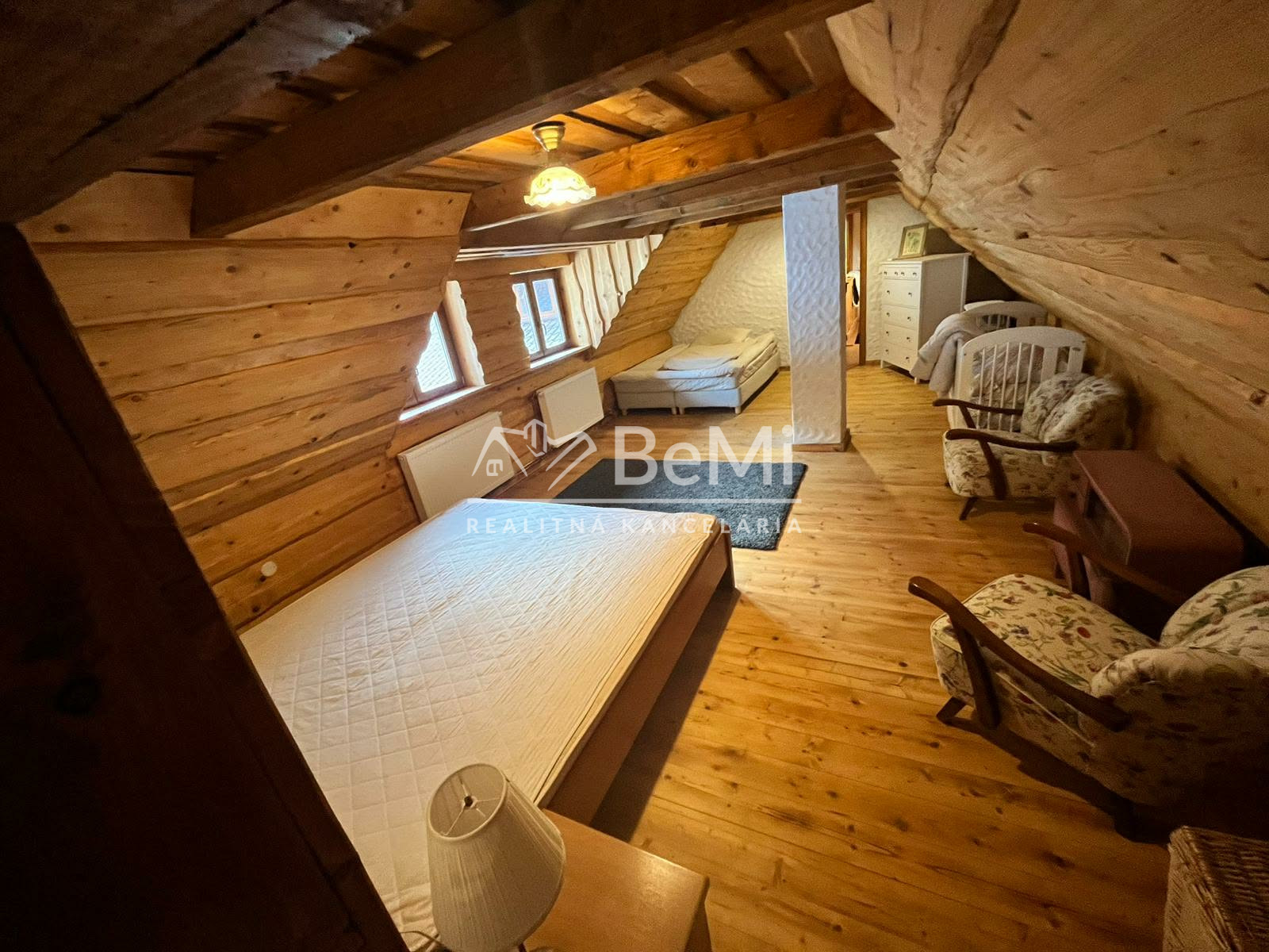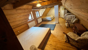 Podkrovie: Tri priestranné izby (21 – 28 m²), jedna so vstupom na loggiu, samostatné WC s umývadlom. Špecifikom je izba so samostatným vonkajším aj vnútorným vstupom.