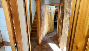 Prízemie: Chodba, priestranná kuchyňa (18 m²), priechodná obývacia izba s krbom (24 m²), dve kúpeľne (sprcha aj vaňa) s elektrickým podlahovým kúrením.