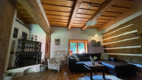 Kúrenie: Kotol na pelety v pivnici + krbová vložka v obývačke. V kúpeľniach elektrické podlahové rošty, v celom dome radiátory.