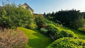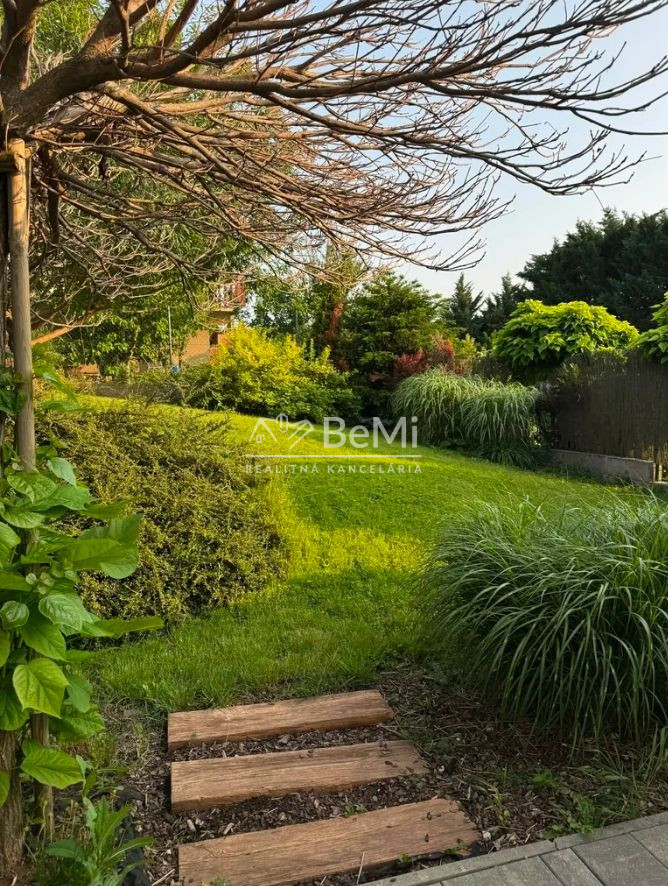 Pozemok 449 m2 + podiel na prístupovej ceste – udržiavaný, upravený s okrasnou výsadbou, trávnik...