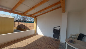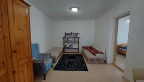 Dispozícia domu : kuchyňa s peknou rohovou kuchynskou linkou,( plynový sporák s elektrickou rúrou), je spojená s obývačkou, špajza, kde sa nachádza plynový kotol, chodba, detská izba, spálňa, kúpeľňa so sprchovým kútom, WC. Z kuchyni je východ na prestrešenú terasu. Zvonka vstup na pochôdznu povalu.