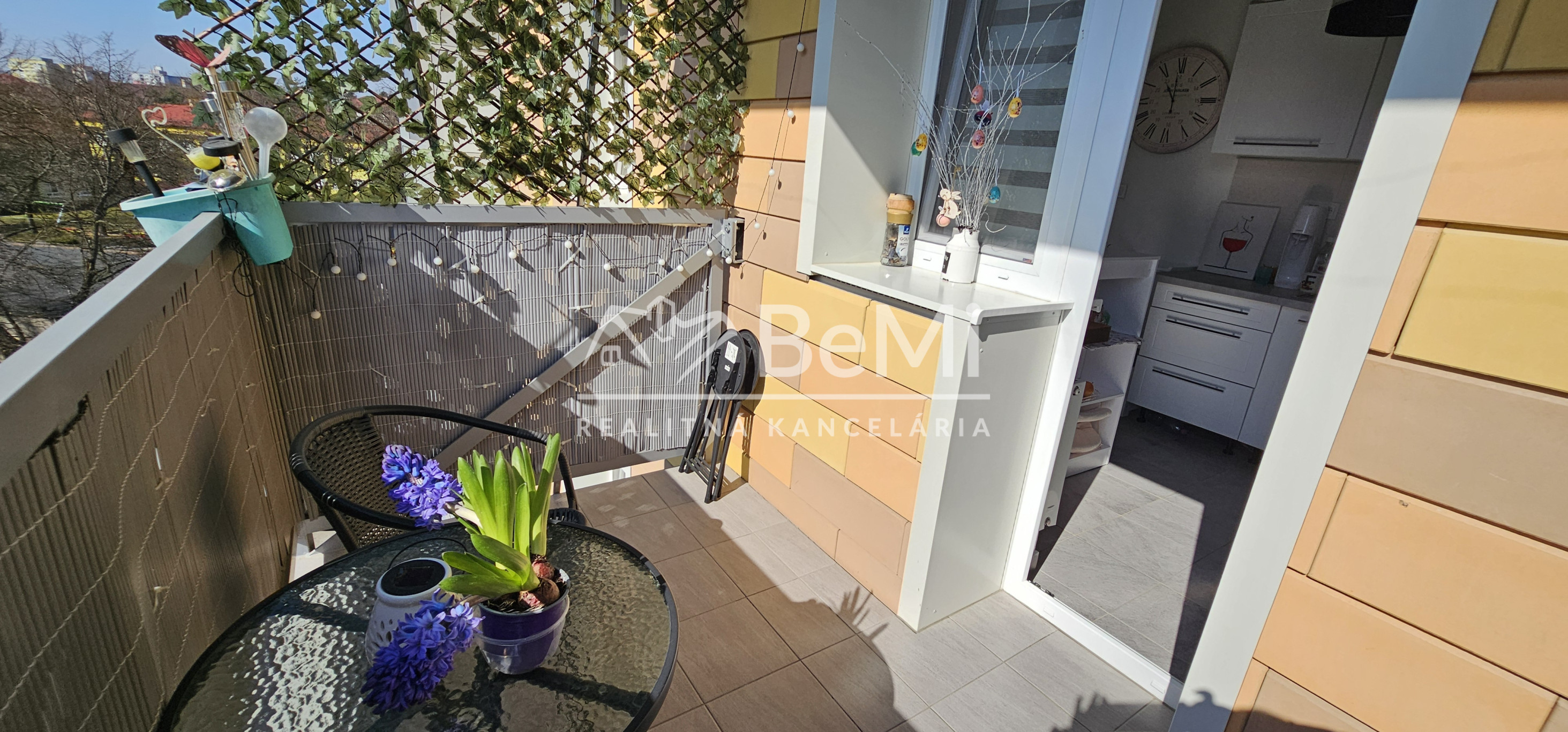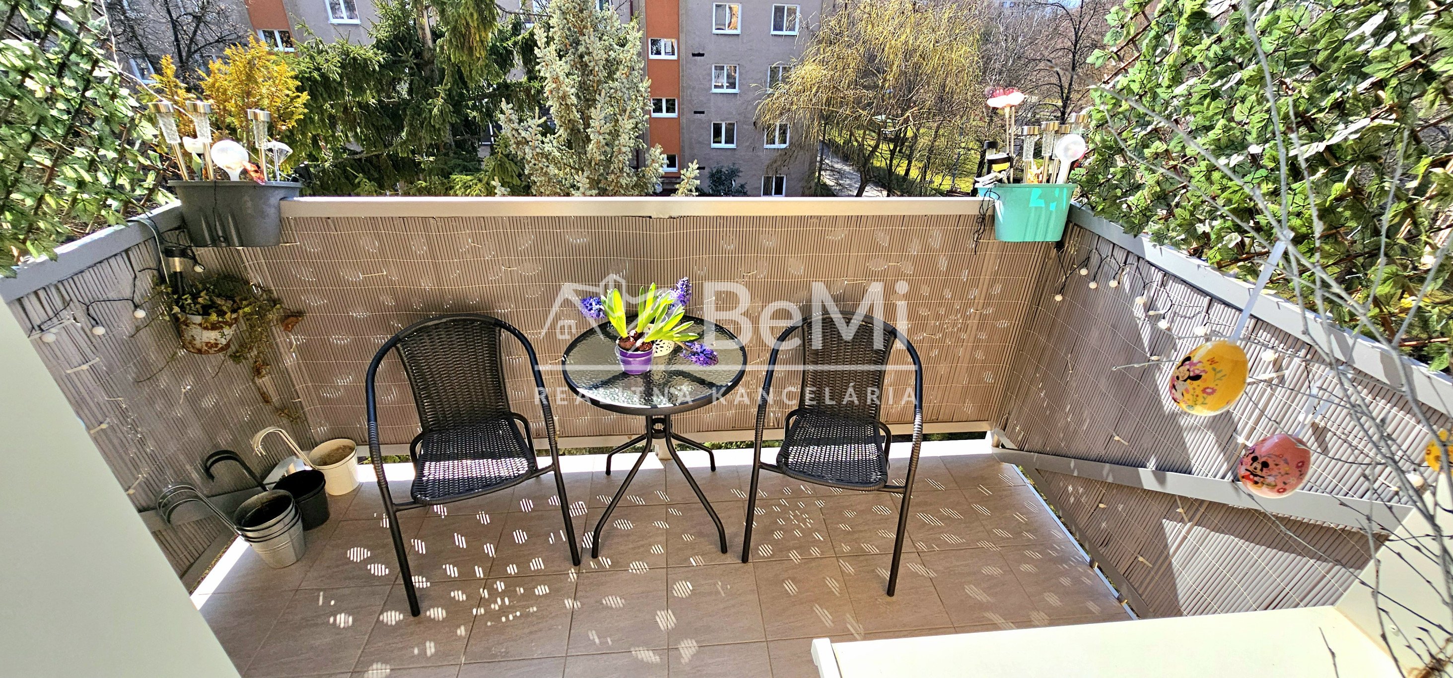 Byt je zrekonštruovaný, sú na ňom vykonané menšie dispozičné úpravy, bytové jadro je murované, s osobitnou toaletou. V kuchyni a kúpeľni sú nainštalované nové elektrické rozvody, nová vodoinštalácia, odpad, nová sanita. Nová kuchynská linka, vstavaná skriňa na chodbe, plastové okná, laminátové podlahy, keramická dlažba, nové interiérové a vchodové dvere. Taktiež bola k bytu dobudovaná loggia-menšia teraska o rozmere 6,84m2 s krásnym výhľadom na zeleň a veľmi príjemnou atmosférou.