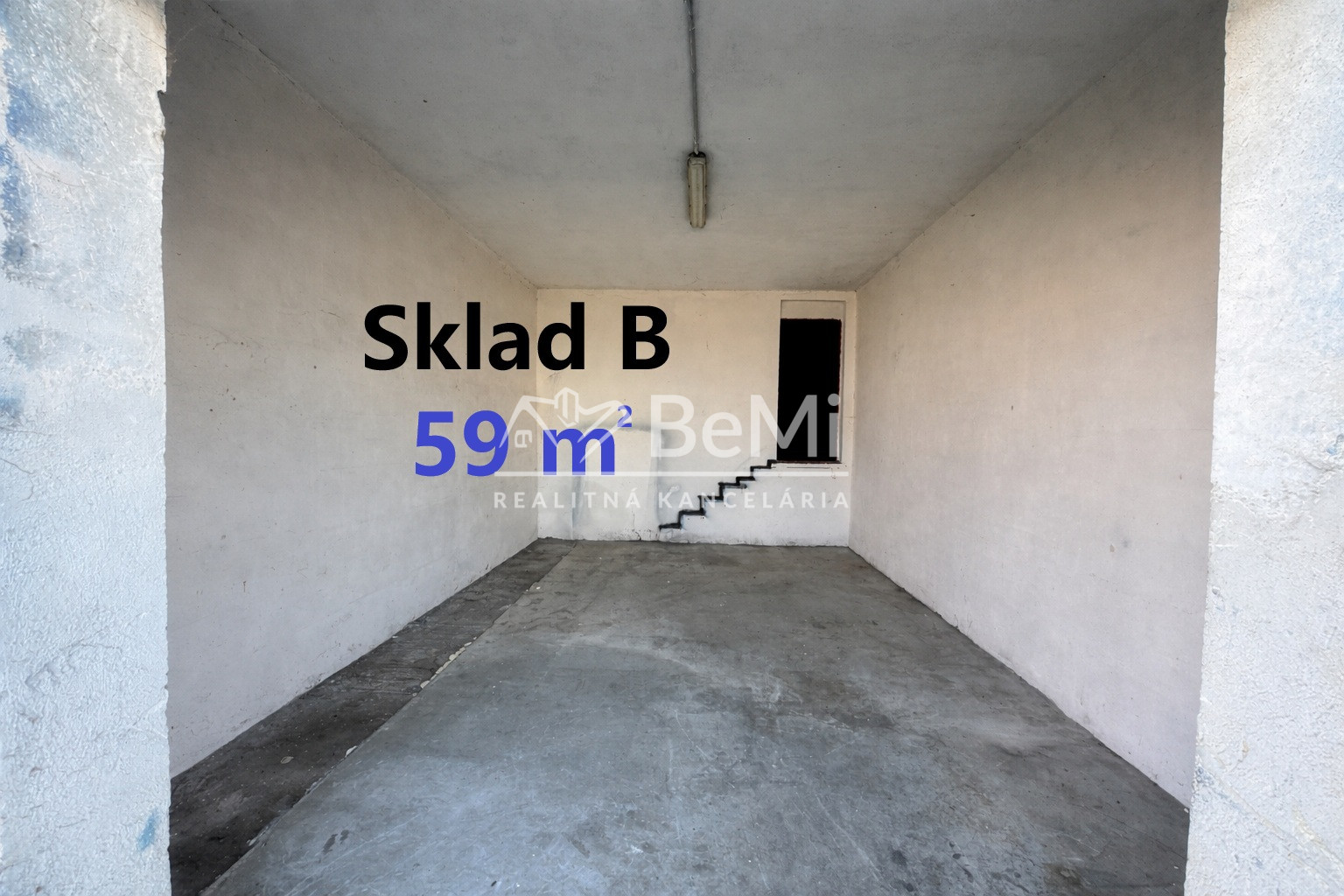Cena nájmu za sklad B - 59 m2 je 170 € (bez DPH) za mesiac bez energií
