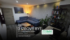 Ponúkame na dlhodobý prenájom veľký a moderne zariadený 3-izbový byt s výbornou dispozíciou v pokojnej lokalite Zvolen – Tepličky.