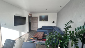 • veľká a priestranná obývačka s modernou sedačkou a klimatizáciou