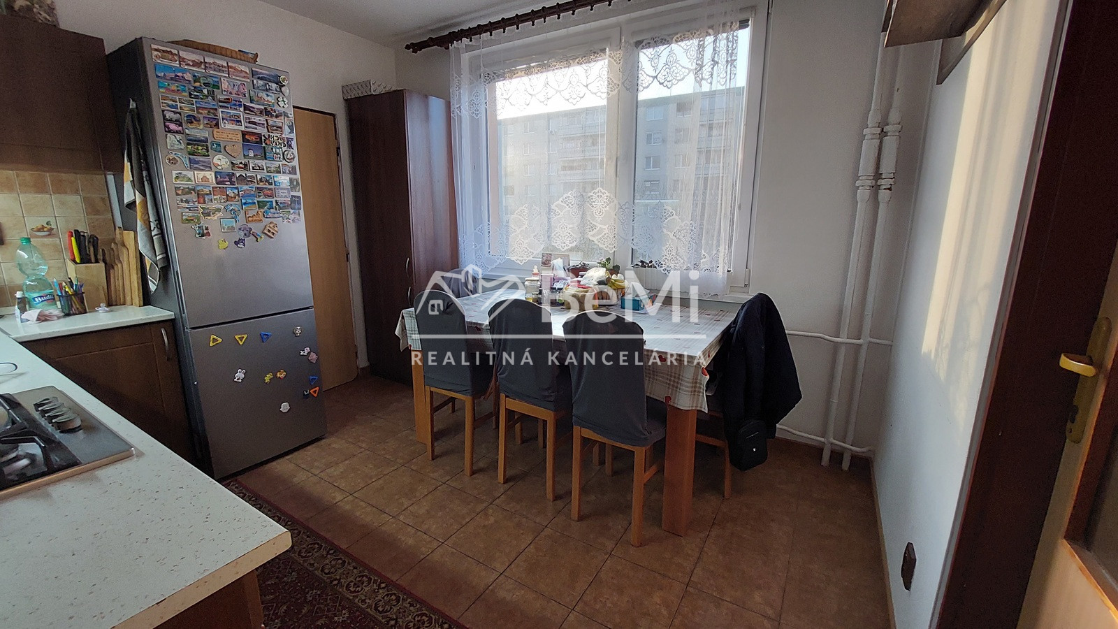 Dispozícia: priestranná vstupná chodba so vstupom do šatníku, murované jadro , samostatné WC, kúpeľňa so spchovým kútom, kuchynská linka je novšia , je z nej vstup do špajze, 2 izby so vstavanými skriňami, 1x váčšia izba a veľká obývačka s výstupom na balkón, z jednej izby je urobený precho do garsónky, kde sa nachádza spálňa s chodbou, kúpeľňou a wc, dá sa jednoducho oddeliť. V suteréne je i pivnica. Podlahy v byte sú kombinácia dlažba a parkety. Steny stierky . Okná sú plastové. Nové bezpečnostné dvere do bytu, sú tu i nové rozvody elektriny, vody a odpad. Vybavenie kuchyne: kuchynská linka, sporák a chladnička, ktorá zostáva. Stav objektu: čiastočná rekonštrukcia. Konštrukcia objektu: panelová. Výhody: slnečný, tiché prostredie, škola, škôlka, centrum mesta všetko v pešej dostupnosti.