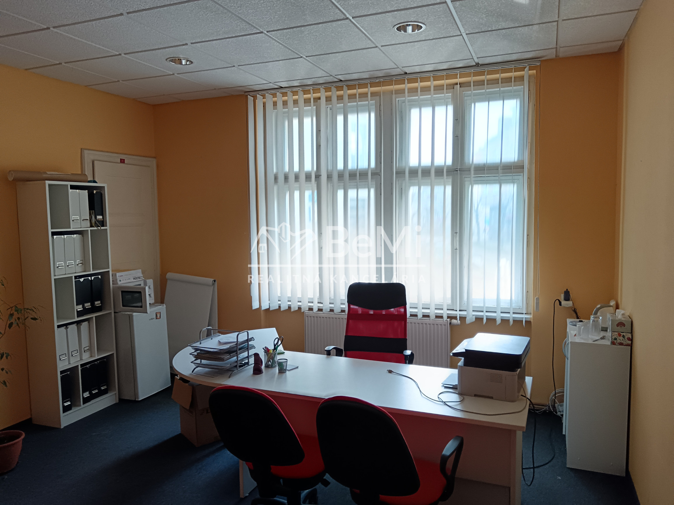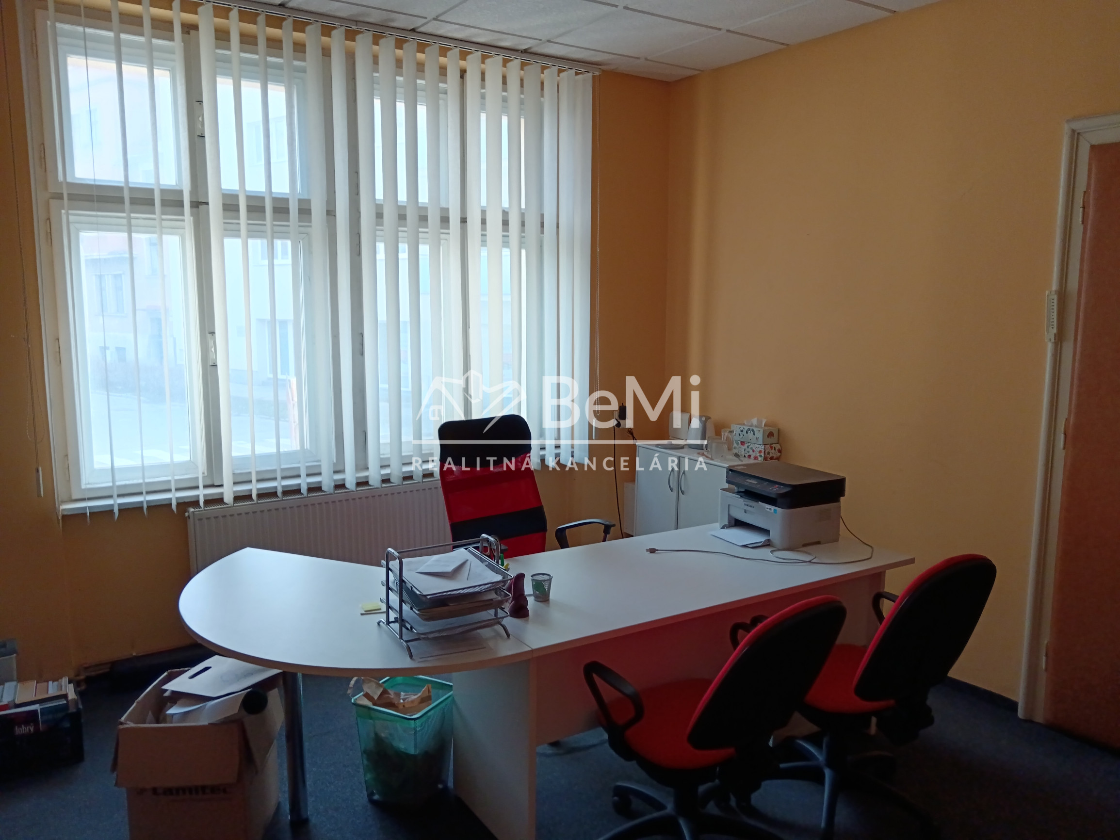 Priestor kancelárie má dostatočné denné osvetlenie a tienenie okien formou žalúzii. Prenajíma sa prázdny, bez kancelárskeho nábytku.