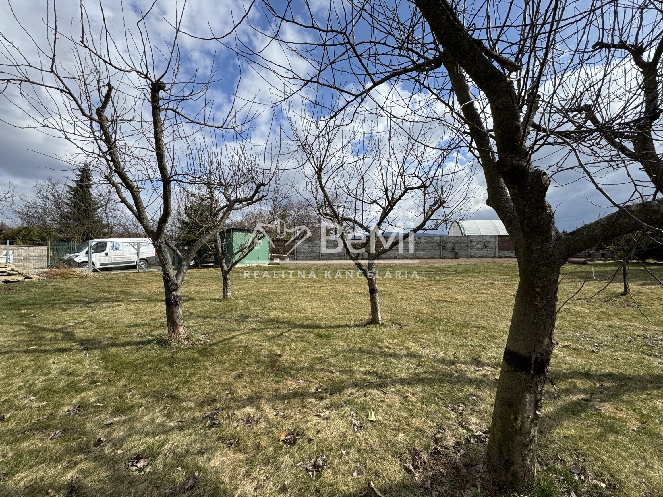 Na pozemku sa nachádzajú ovocné stromy, malý sklad narádia a časť pozemku bola krátko pripravená na sadenie.