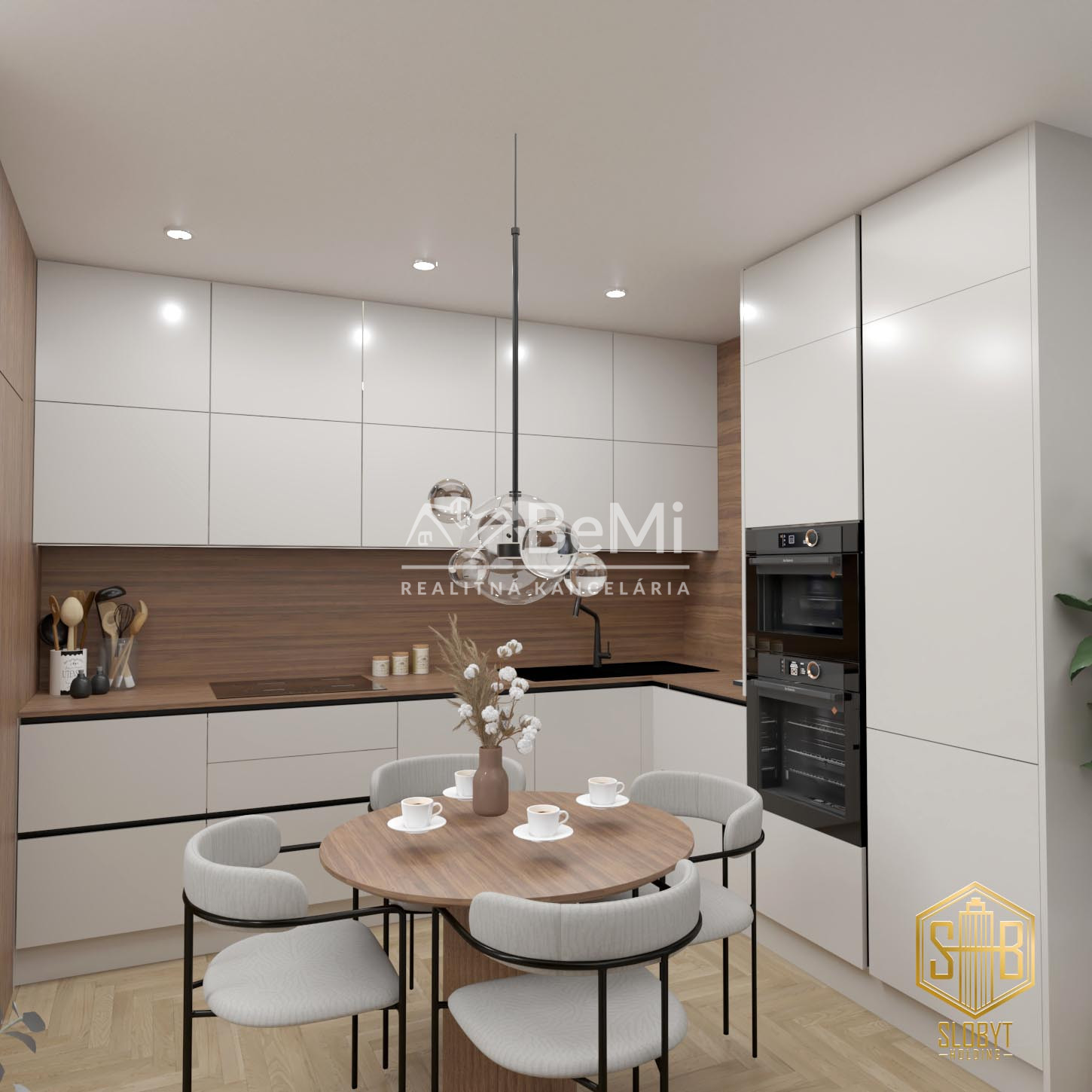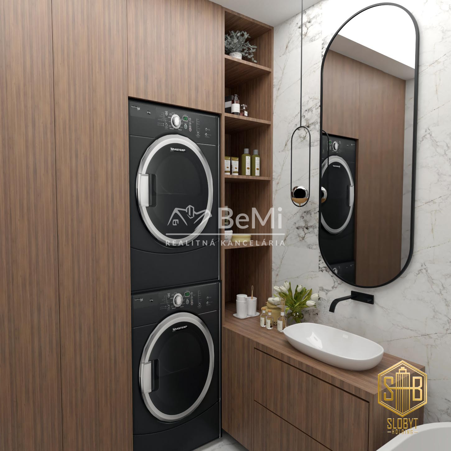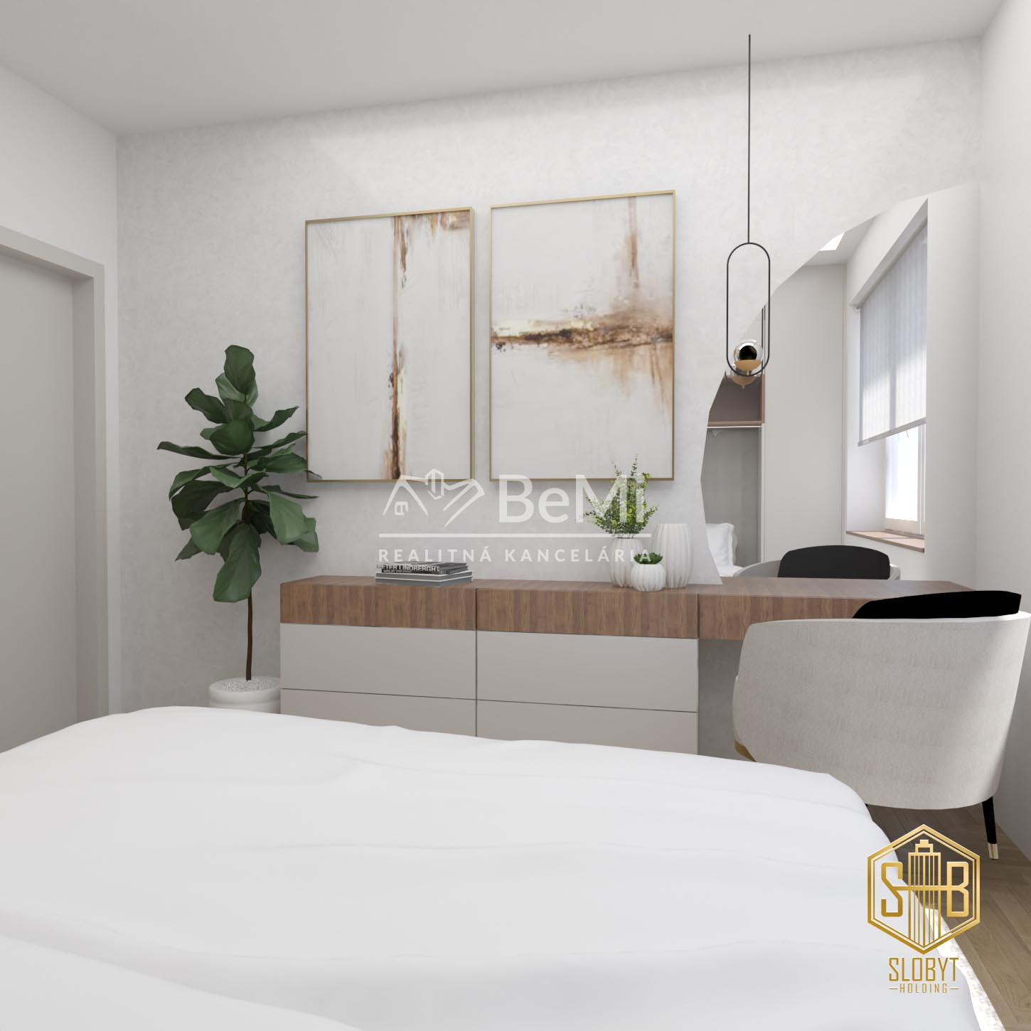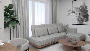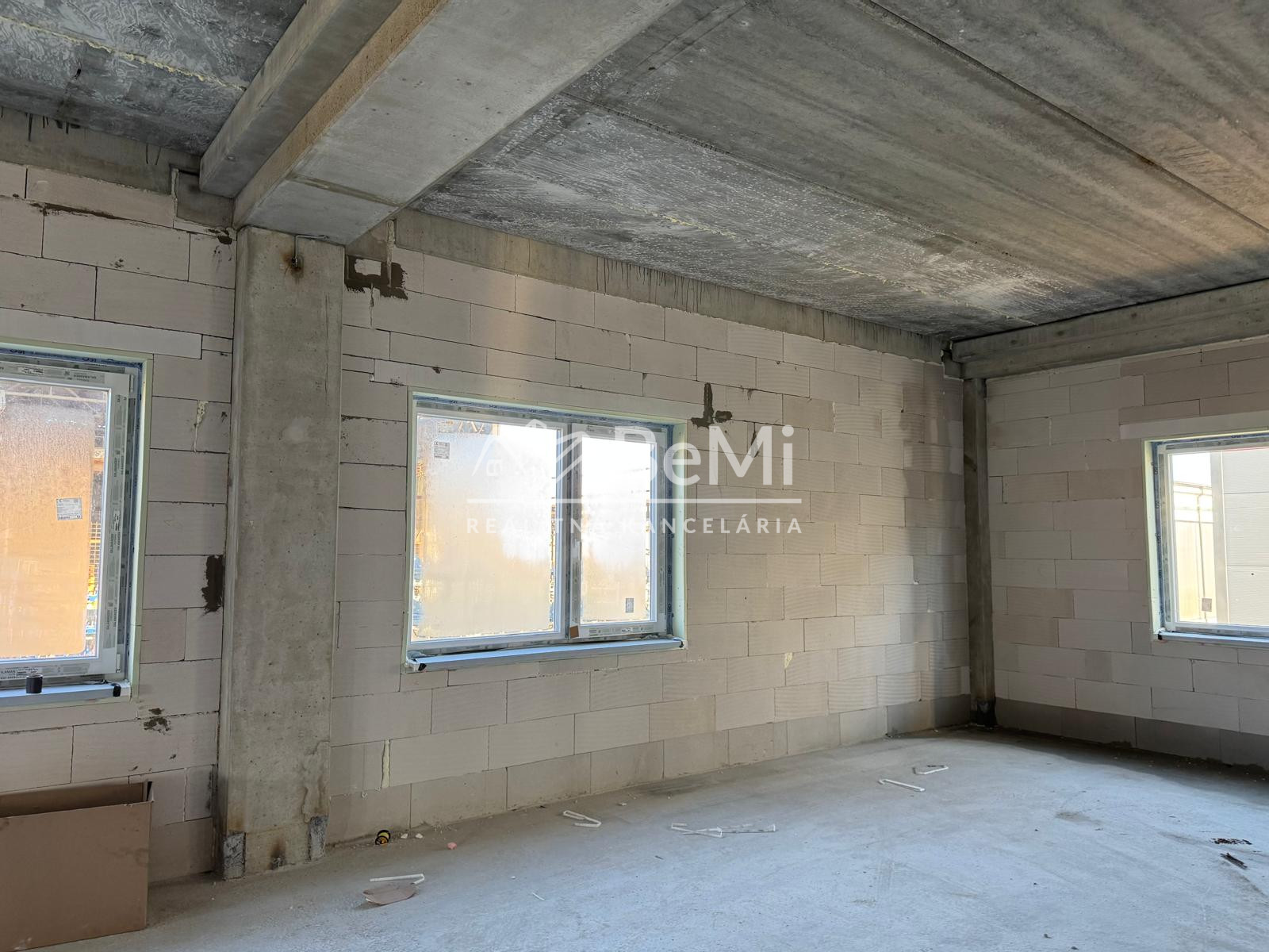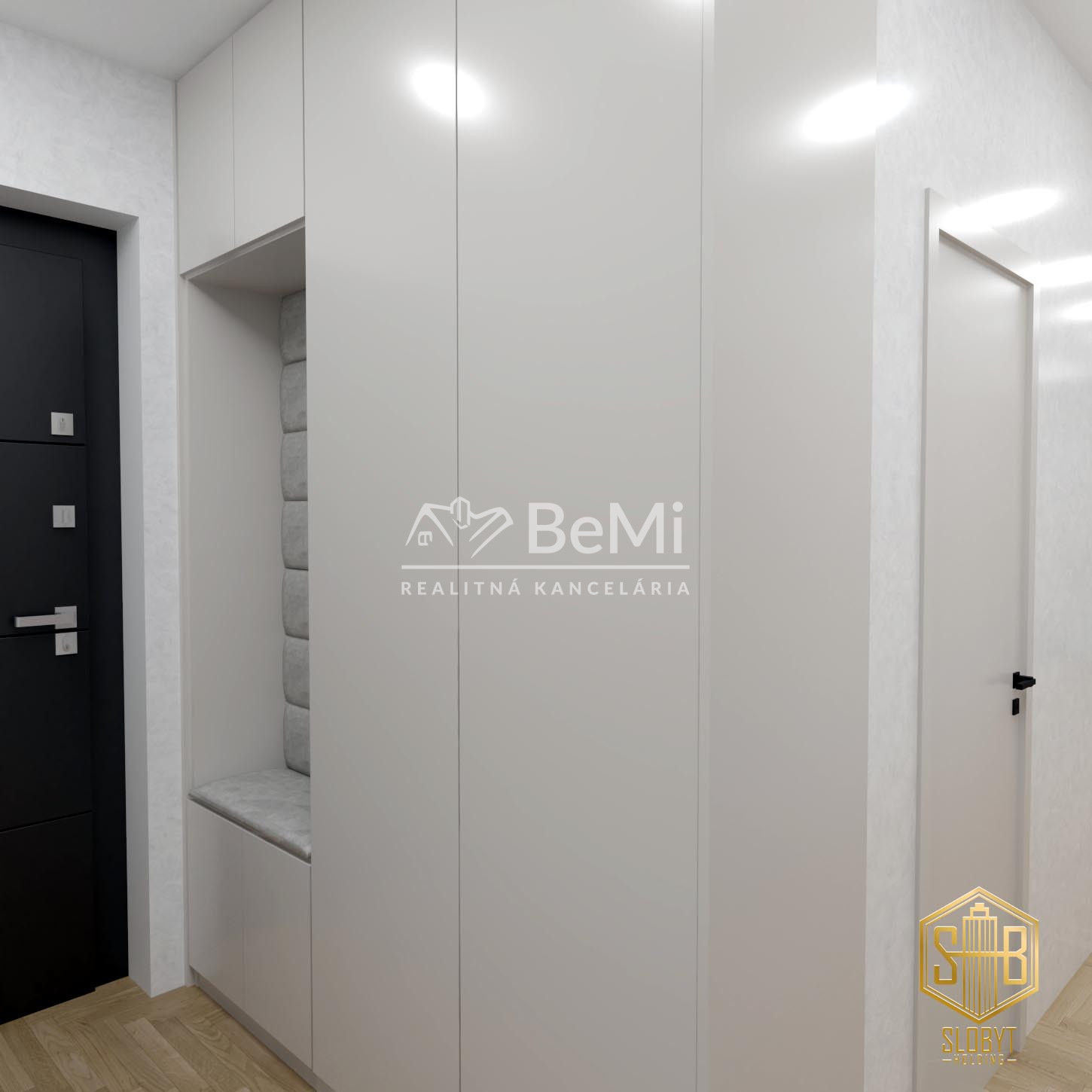 Apartmán v štádiu holobyt, stavebne dokončené steny, biely náter, vodné podlahové kúrenie s elektrickým kotlom, vstupné protipožiarne dvere, vypínače, elektrická predpríprava na svietidlá, loftové betónové stropy s priznanými prvkami, predpríprava kúpeľne vrátane Geberitu, predpríprava vonkajších žalúzií, celohliníkový balkón a kompletné realitné služby.