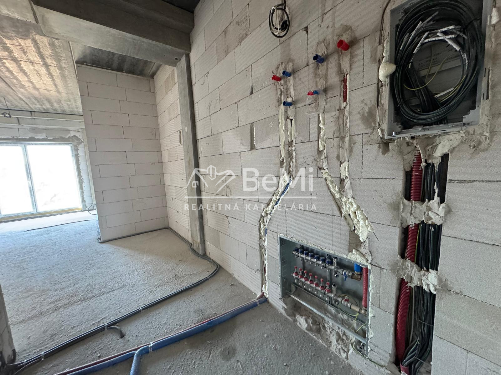 Apartmán v štádiu holobyt, stavebne dokončené steny, biely náter, vodné podlahové kúrenie s elektrickým kotlom, vstupné protipožiarne dvere, vypínače, elektrická predpríprava na svietidlá, loftové betónové stropy s priznanými prvkami, predpríprava kúpeľne vrátane Geberitu, predpríprava vonkajších žalúzií, celohliníkový balkón a kompletné realitné služby.