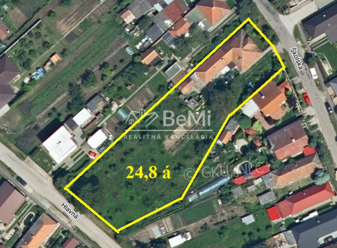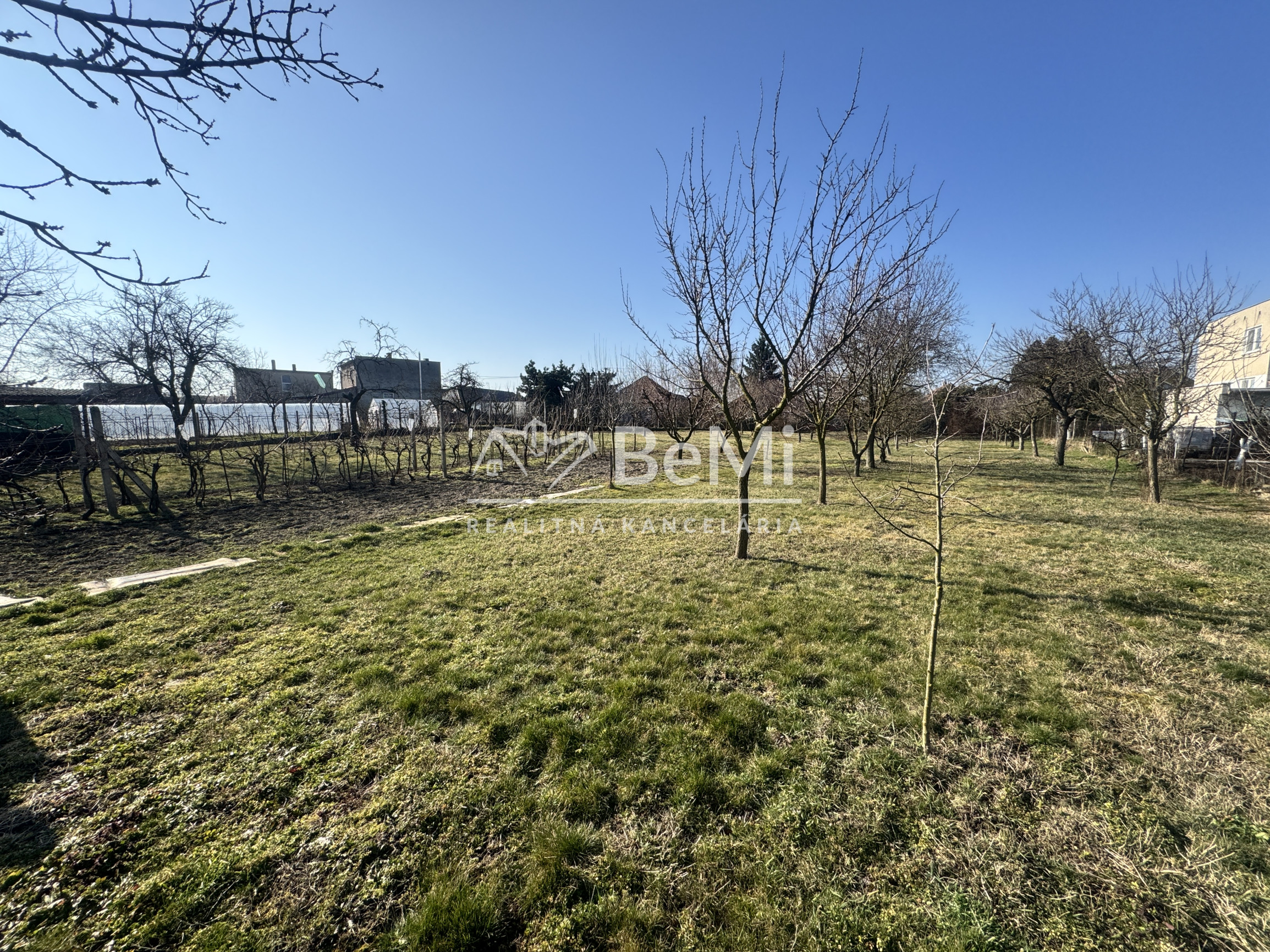 K domu prislúcha veľkorysý pozemok o rozlohe 24,8 á, ktorý ponúka široké možnosti využitia. Súčasťou je rozľahlá záhrada s výmerou 16,5 á, ktorá je prístupná aj z druhej ulice a je možné ju odčleniť ako samostatný stavebný (developerský) pozemok.
