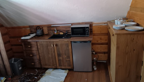 Chatka je dispozične riešená vstupom v prízemí do obytnej časti obloženej tatránským profilom. Vybavená elektrorozvodnou skriňou ( 230/400 V).
