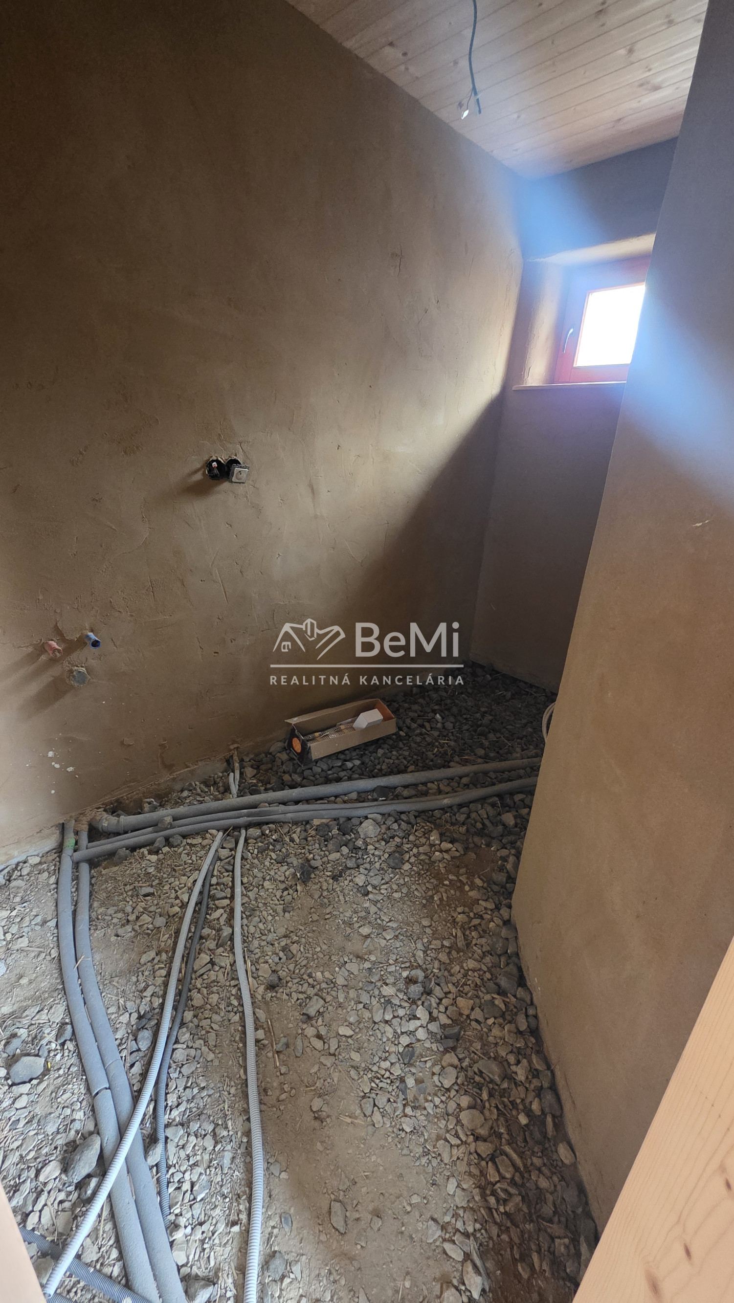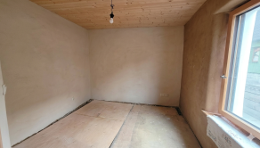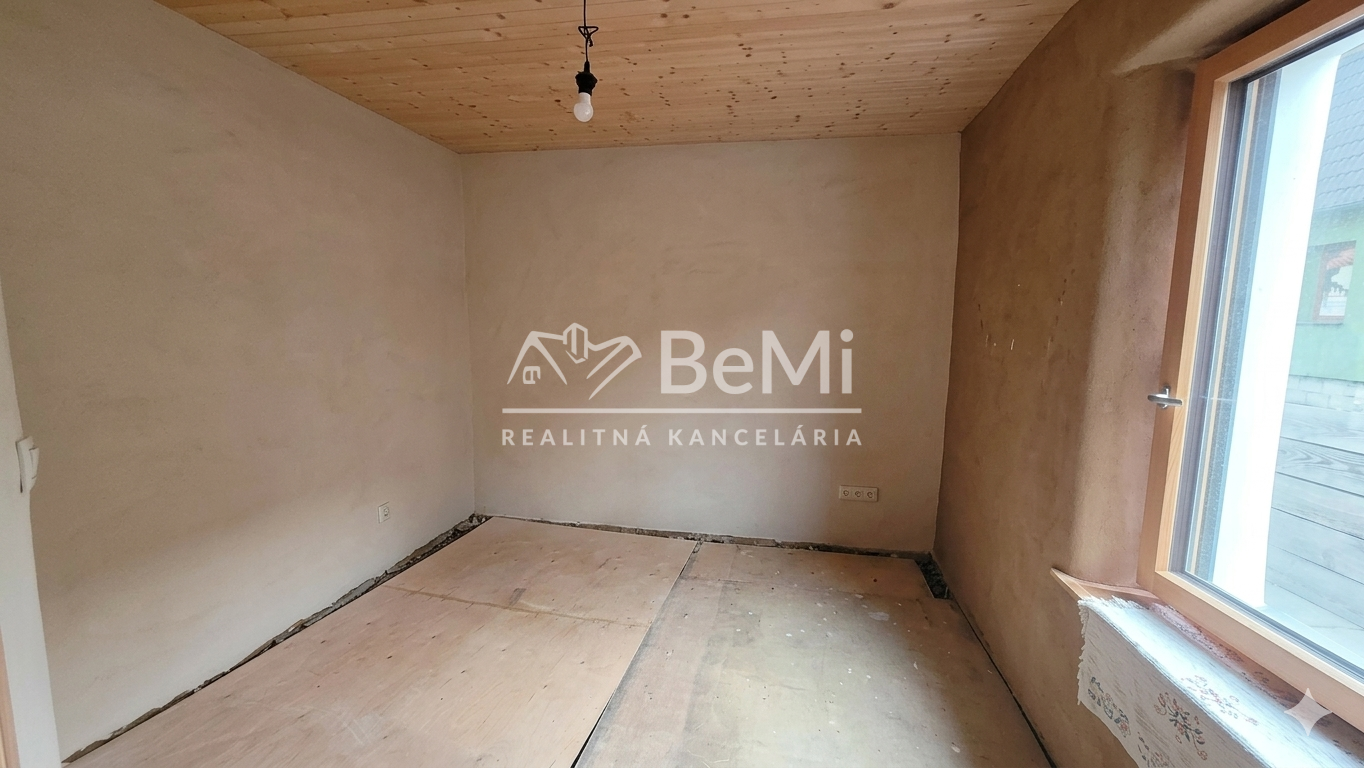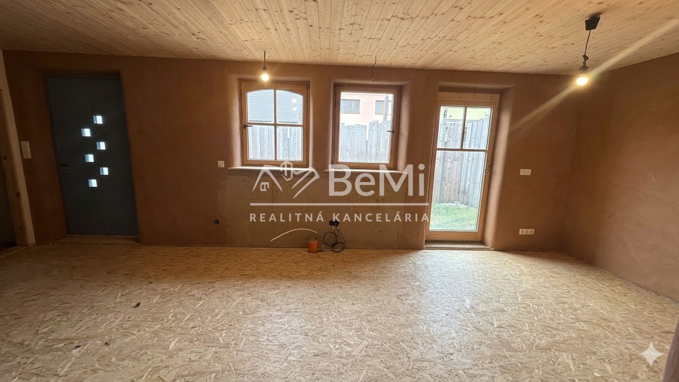 Stav: dom je potrebné dokončiť – nutné dorobiť podlahy, kúpeľňu a WC, čo dáva novému majiteľovi možnosť prispôsobiť si bývanie podľa vlastných predstáv.