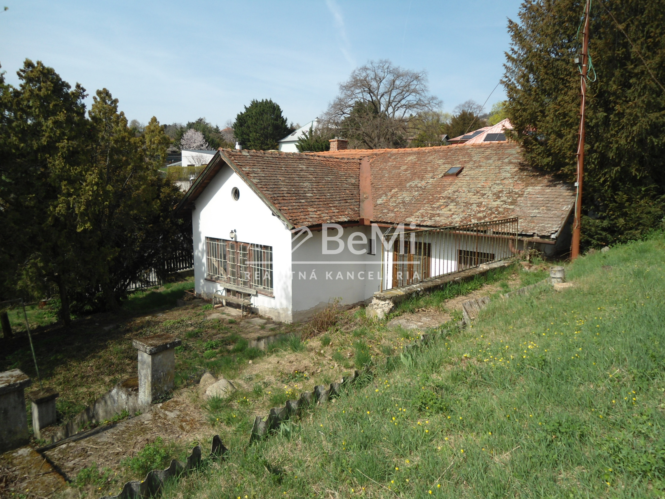 ID: 981-12, NR - RD Zobor, dobrá lokalita, starší rodinný dom v započatej rekonštrukcii, 2 izby, kúpeľňa, klenbová pivnica, chatka, 13 ár., IS - ponúkame na predaj rodinný dom v započatej rekonštrukcii postavený na pozemku o výmere 1333 m2 v lokalite Nitra - Zobor, centrálna časť Zobora, všetky IS, svahovitý pozemok, starší RD v pôvodnom stave s osobitou atmosférou, 2 izby, veľká obývačka, spálňa, kuchyňa, kúpeľňa s WC, chodba, 3x komora, samostatné WC, z obývačky výstup na terasu, 2x komín na tuhé palivo, ústredné kúrenie, liatinové radiátory, plynový kotol na ÚK, ohrev TV cez elektr. bojler, elektr. 230 V, plyn, mestská voda, žumpa, kanalizácia na pozemku, pôvodný drevený krov, škridla, pod domom pivničné priestory - 3 miestnosti a veľká klenbová pivnica (10x4,5m), vonkajšia pivnica, v záhrade chatka - 1 miestnosť s krbom, chodba a samostatné WC, elektrika, voda, podlaha dlažba, asfaltová prístupová cesta, MHD, dobrá lokalita, možnosť využitia pozemku na výstavbu nového RD.